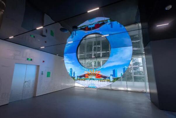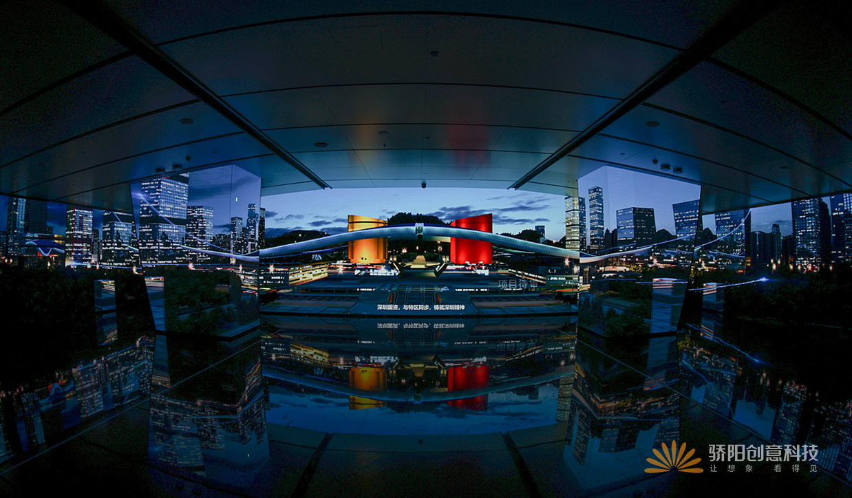 深圳之眼通过高反射天花、半圆环拼接屏呈现出“圆环镜像”效果。
